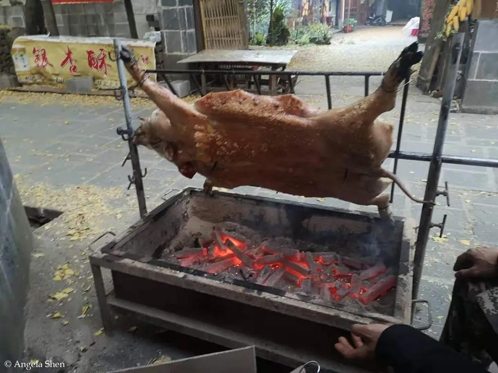 晚上选择了西董大院吃饭。除了西董家族故事和各种好吃的菜,比如烤小耳朵猪,私房豆腐等。我们不得不两个梗: