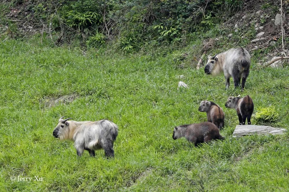 我在去年5月来到四川唐家河自然保护区,在路旁的山坡上就能看到一群群的羚牛在悠闲地吃草。甚至还有褐色的小牛犊混迹其中。
